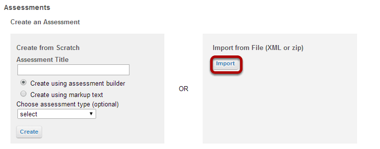 To import an assessment, click Import.